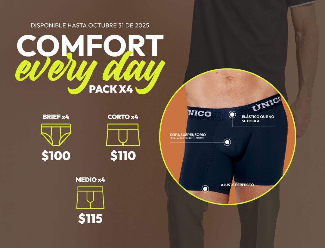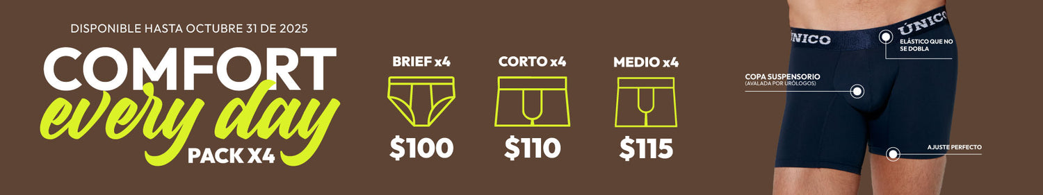 Pura comodidad, sin complicaciones.💡 Oferta de Packs en bóxers hasta el 31 de Octubre. Tu silueta favorita en todas las siluetas: Brief, Corto y Medio. ¡Consigue los tuyos antes de que se agoten!