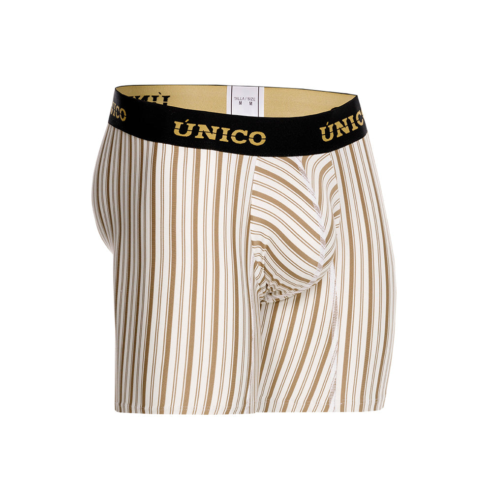 Color: Rayas cafés y blancas con elástico negro contramarcado con dorado.