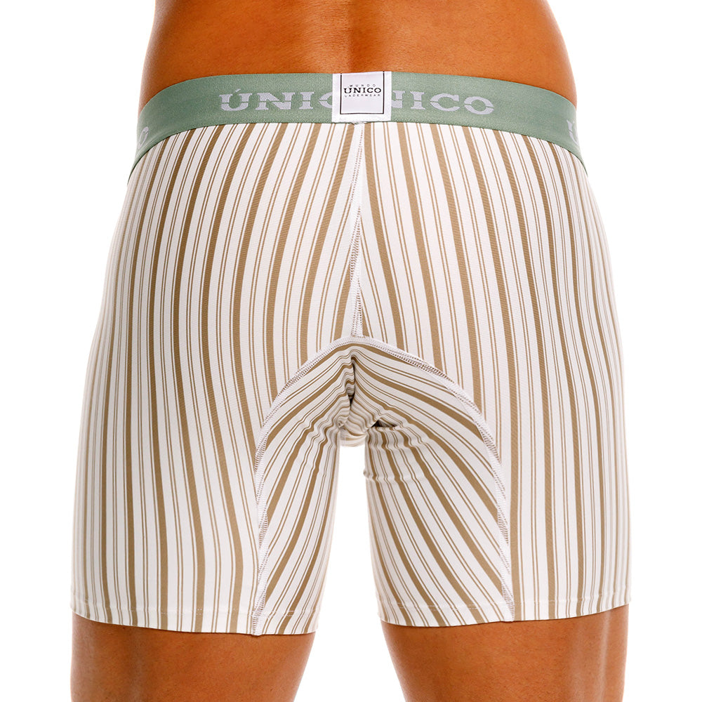 Color: Rayas cafés y blancas con elástico verde