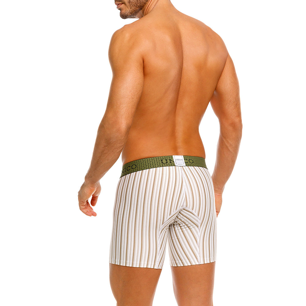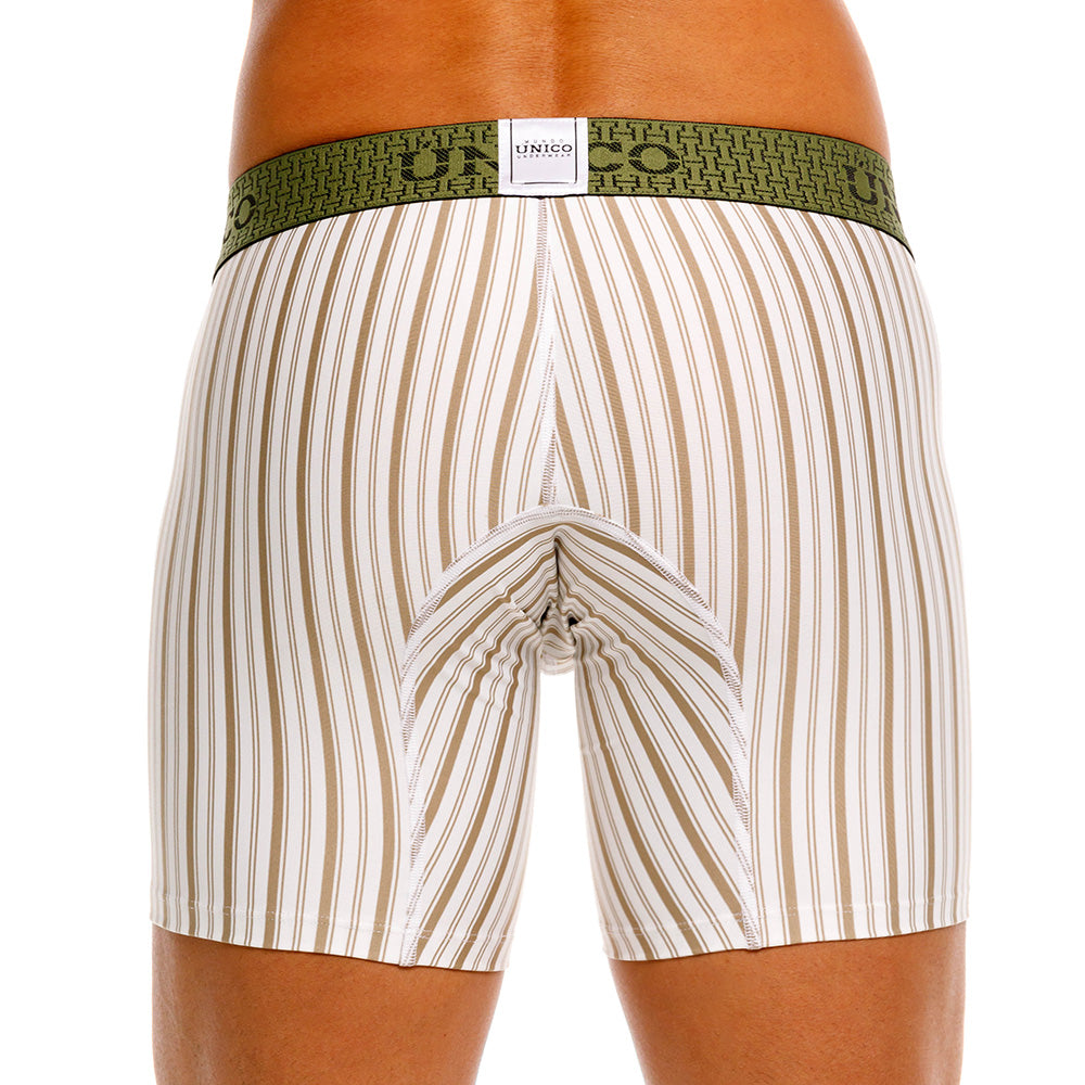 Color: Rayas cafés y blancas con elástico verde contramarcado.