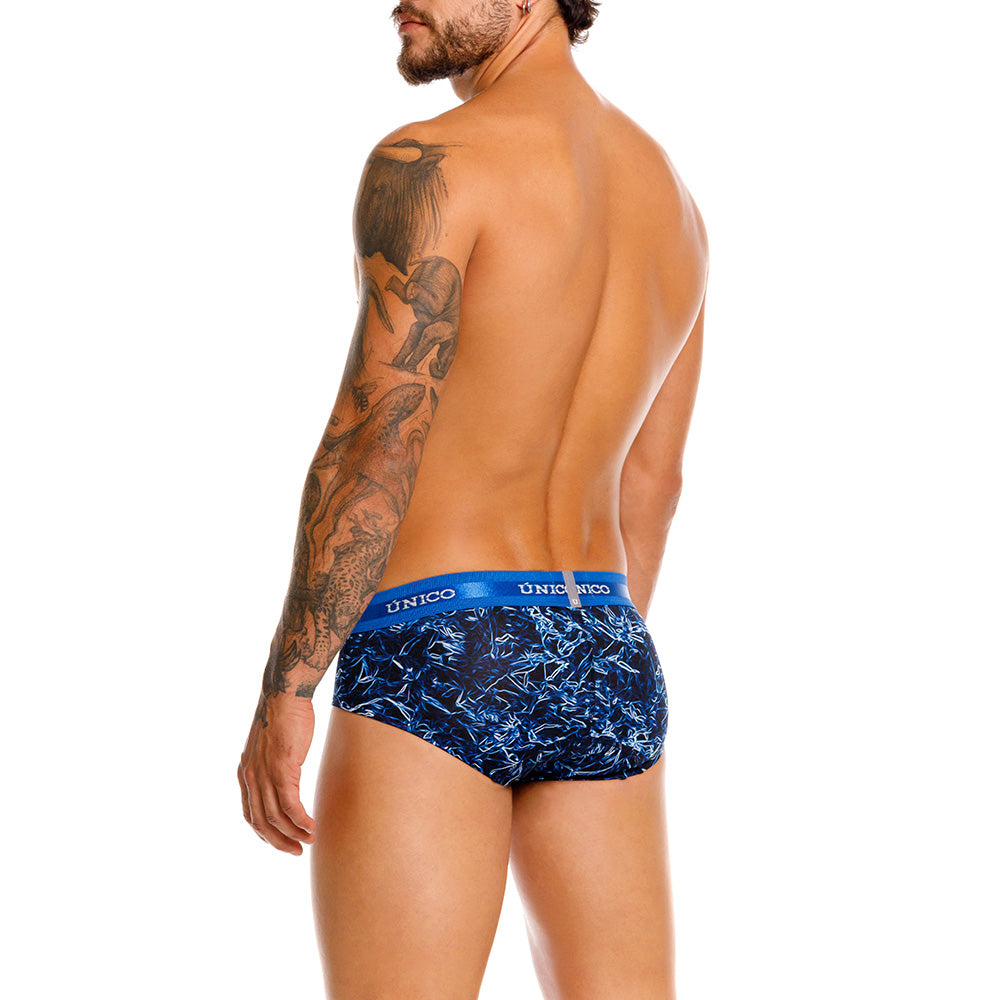 Diseño/color: Tela microperforada estampada con elástico contramarcado azul.
