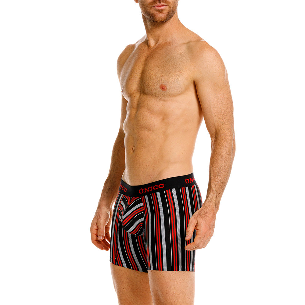 Este bóxer medio en microfibra te brindará una sensación única de frescura y confort gracias sus materiales premium, diseños exclusivos y sus propiedades de transpirabilidad las cuales permiten que el aire fluya. Su elástico no se dobla ni causa sensación de incomodidad, y su copa suspensorio está avalada por urólogos para ayudar a prevenir enfermedades íntimas masculinas.