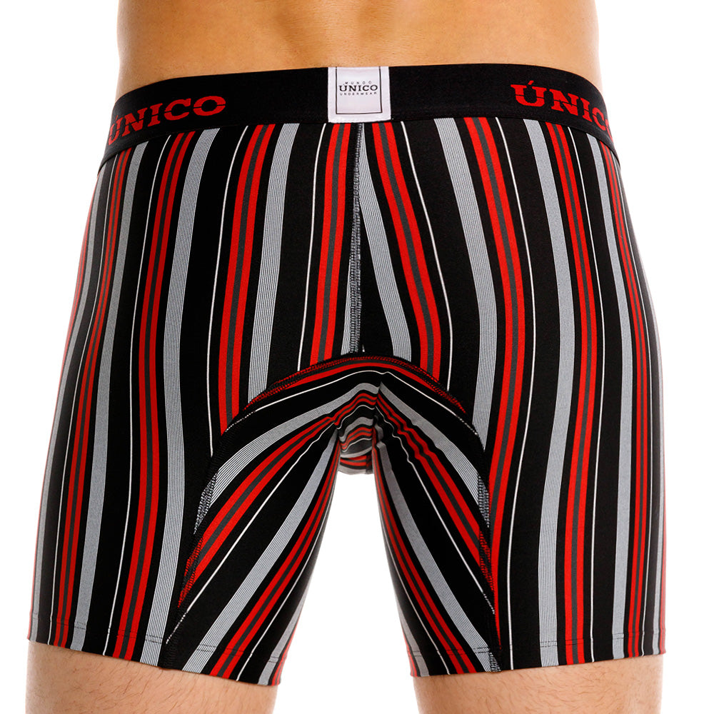 Color: Rayas rojas, negras, grises y blancas con elástico negro contramarcado en rojo.