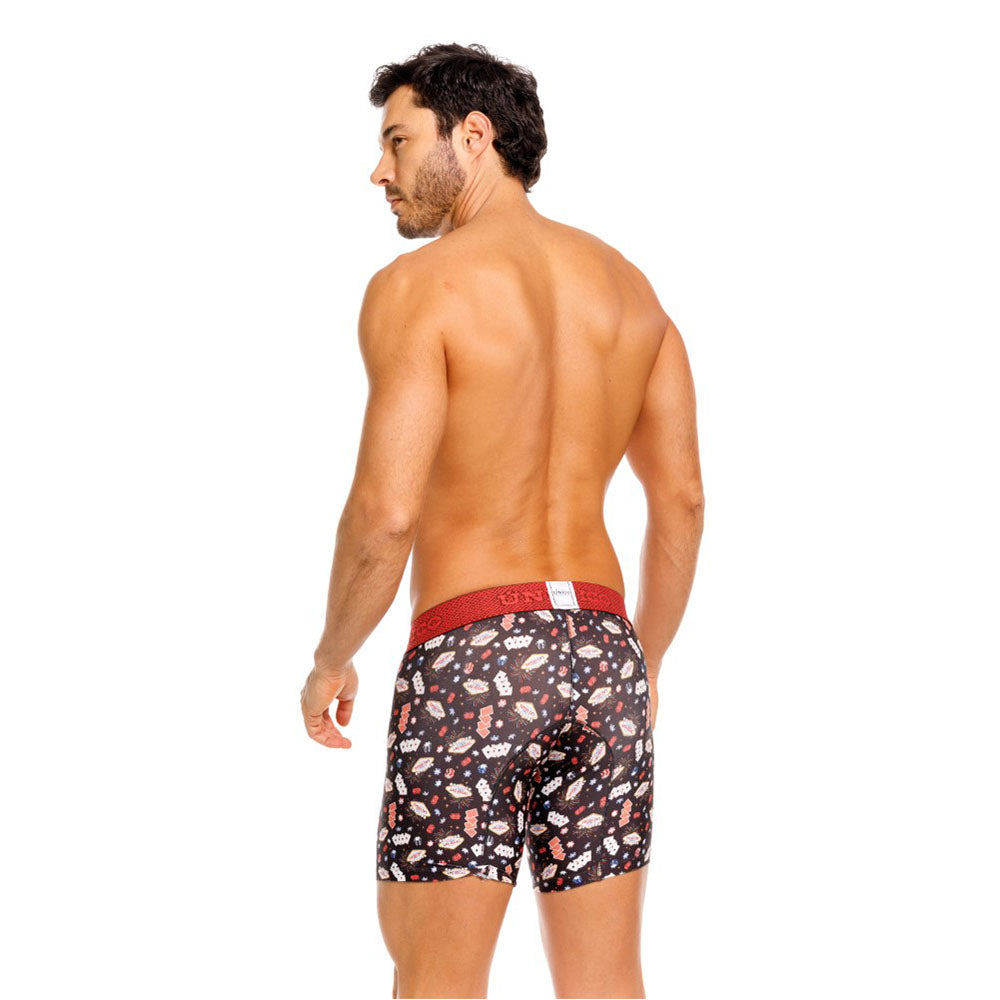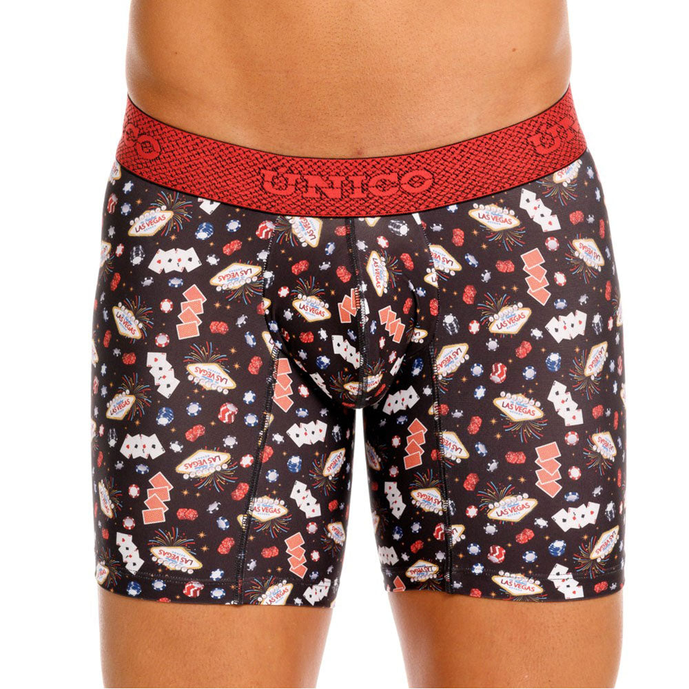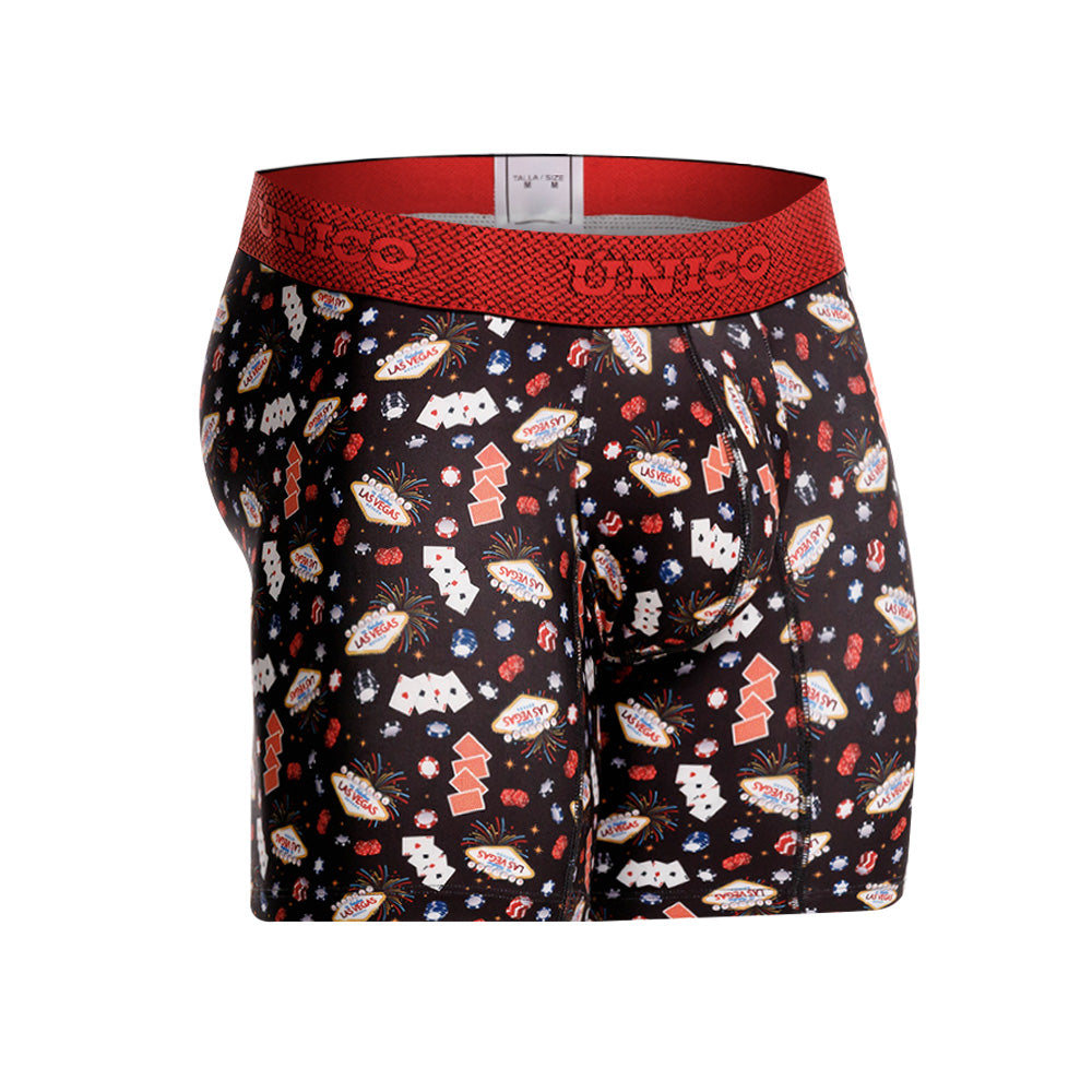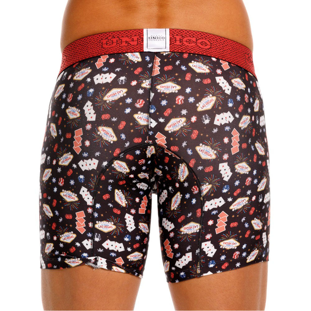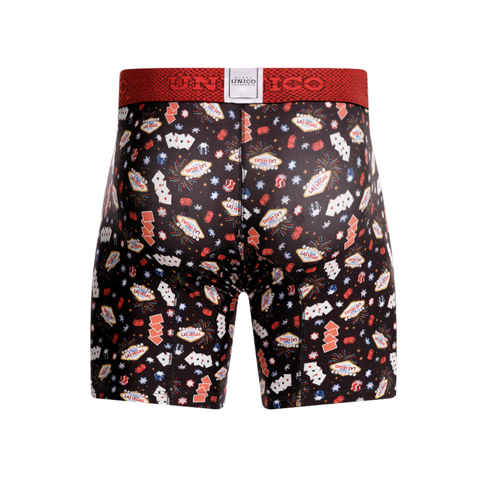 Color: Estampado de elementos de casino, con elástico rojo contramarcado.