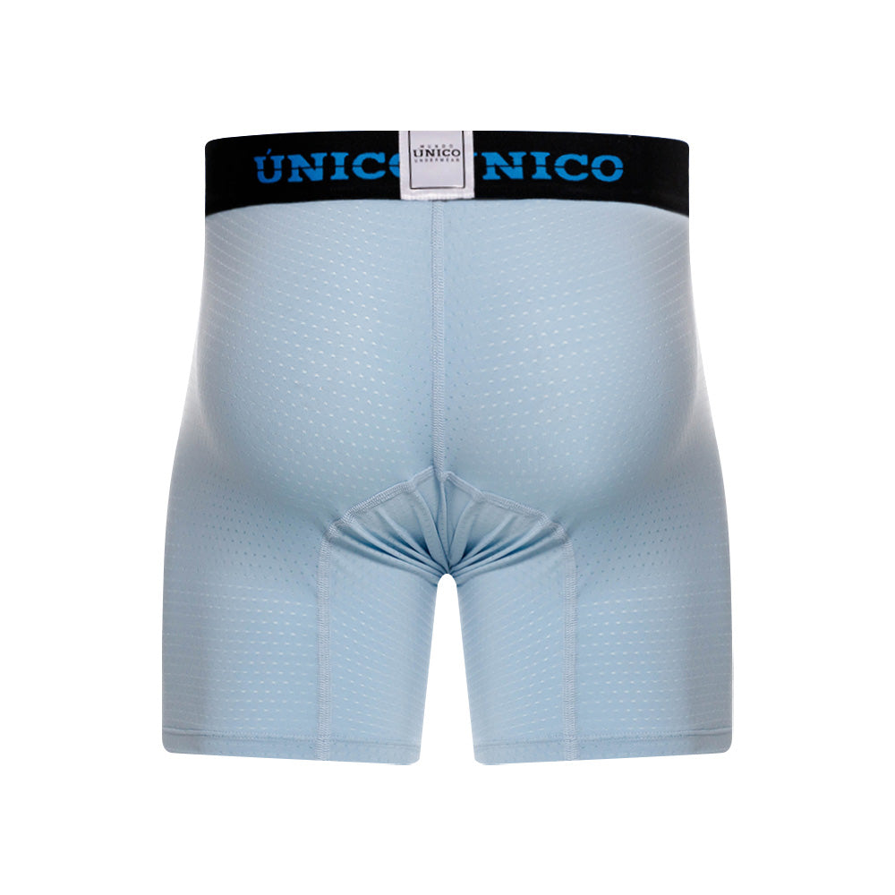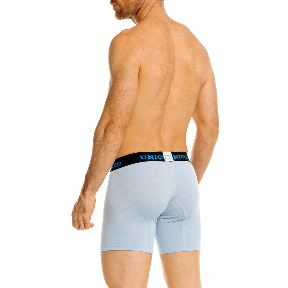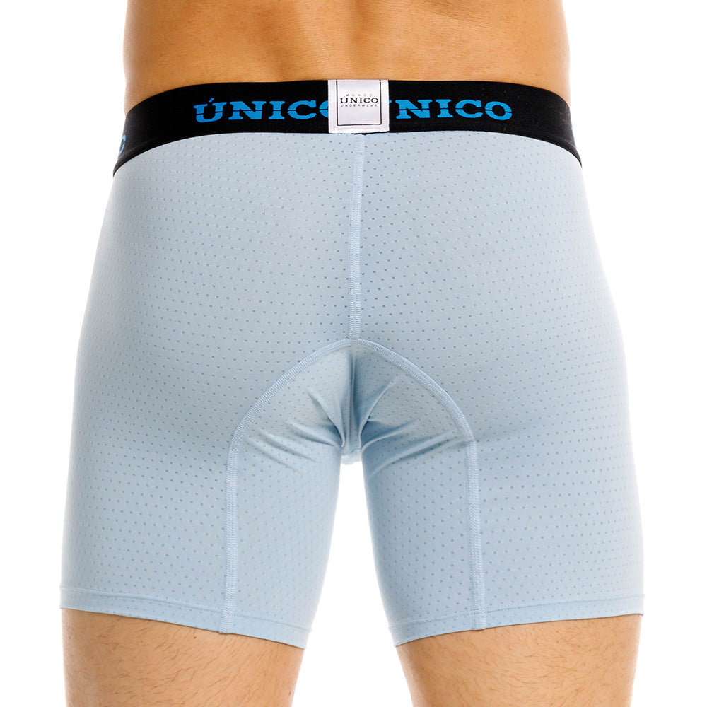 Color: Prenda microperforada azul claro con elástico negro contramarcado en azul.