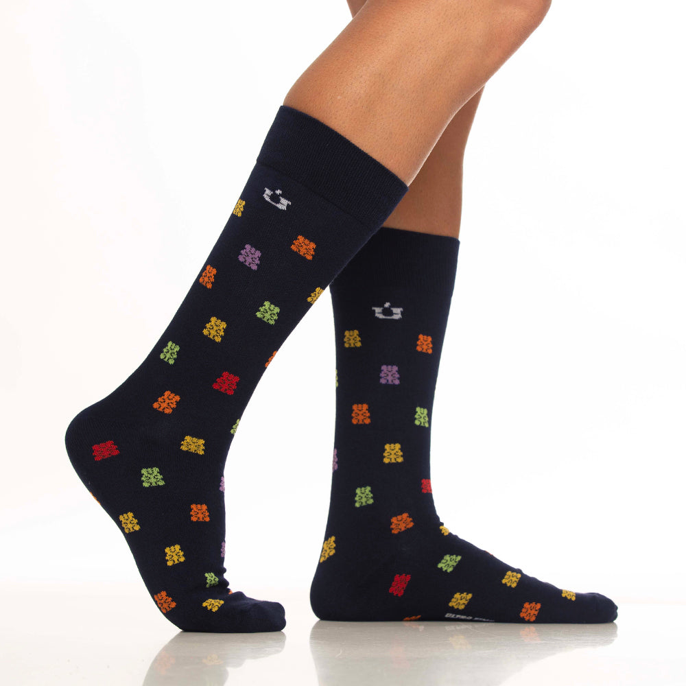 - Diseño/color: Azul oscuro con miniprint de ositos de gomita.
